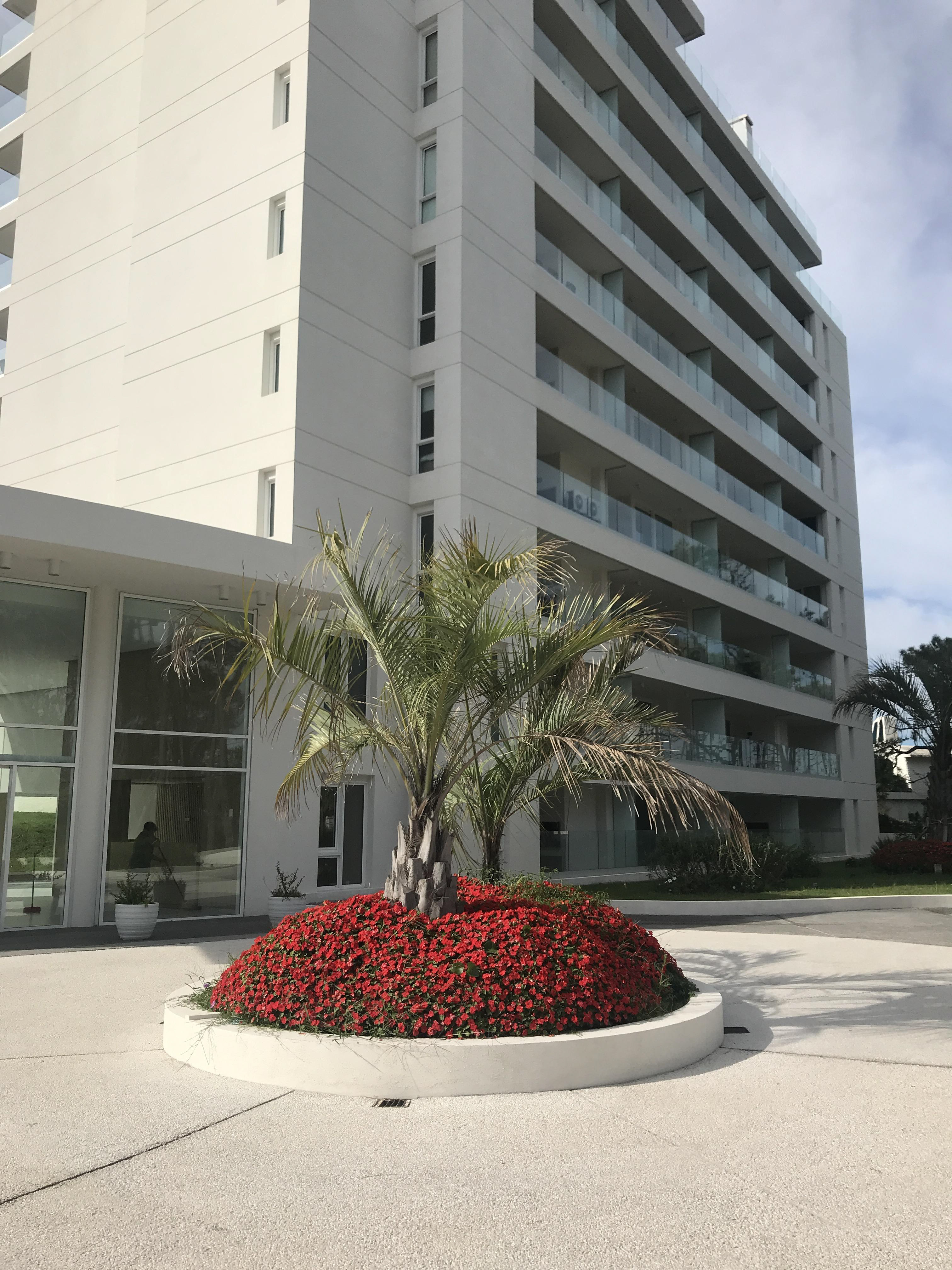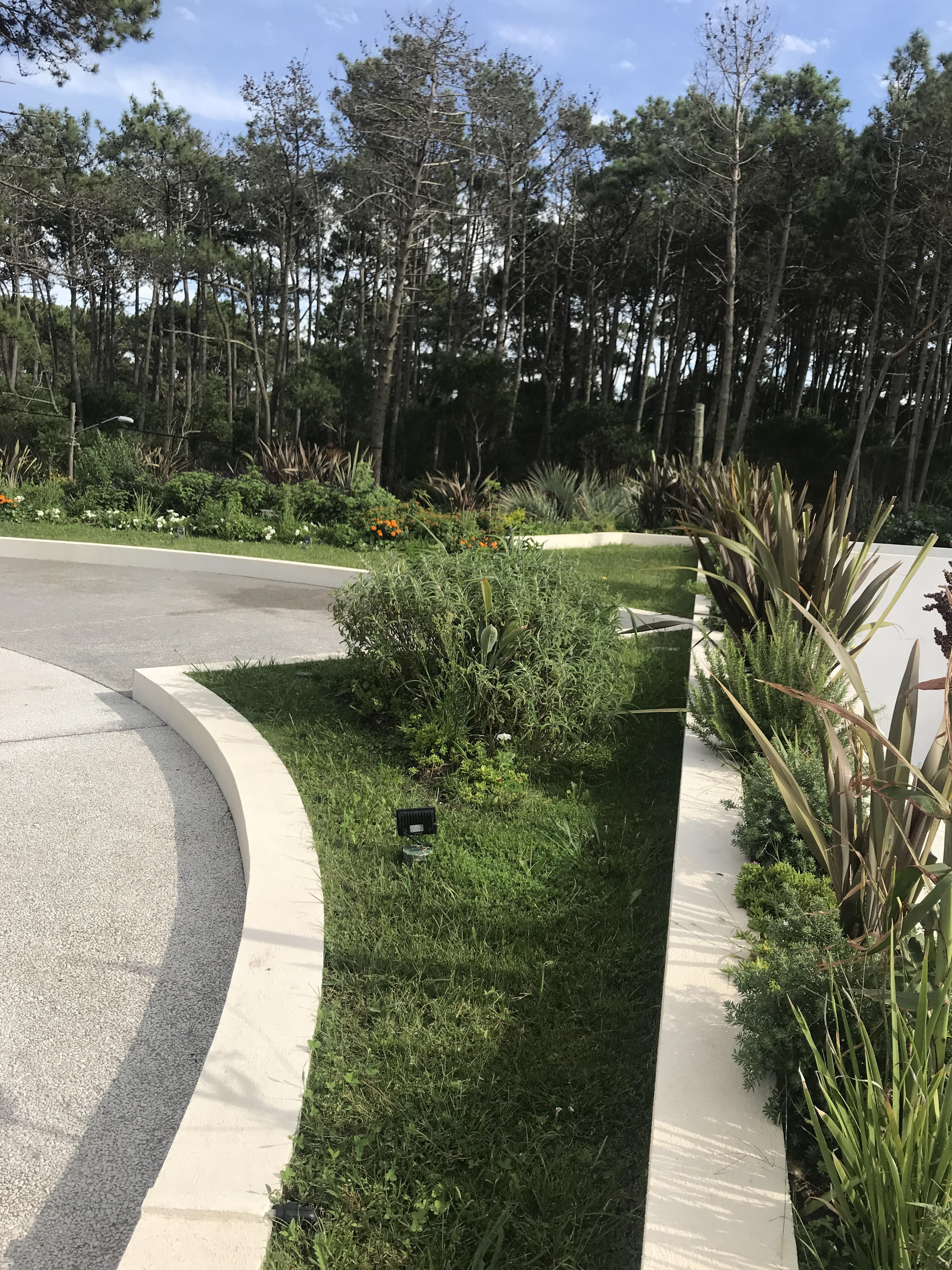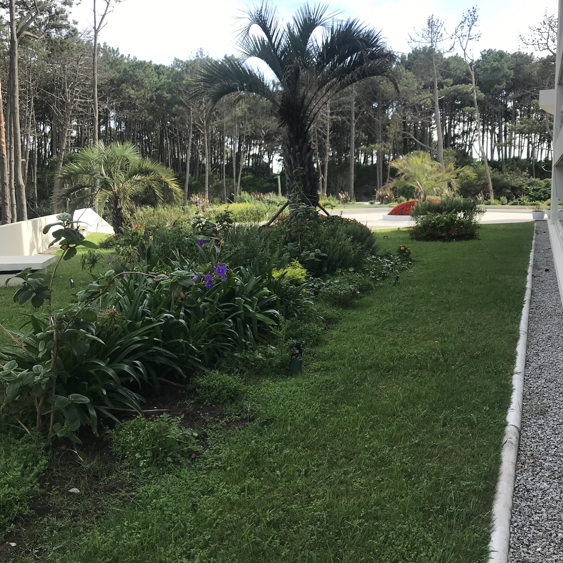Proyecto paisajístico en acceso al edificio Poseidón Laguna, se utilizaron como preexistencias las formas de la arquitectura y se tomaron en consideración las visuales desde los apartamentos, se utilizaron tanto especies nativas como exóticas no invasoras, primando su selección por su características ornamentales, ambientales y su capacidad de adaptación, ya que el sitio presenta suelos poco profundos y la influencia constante de los vientos salinos.