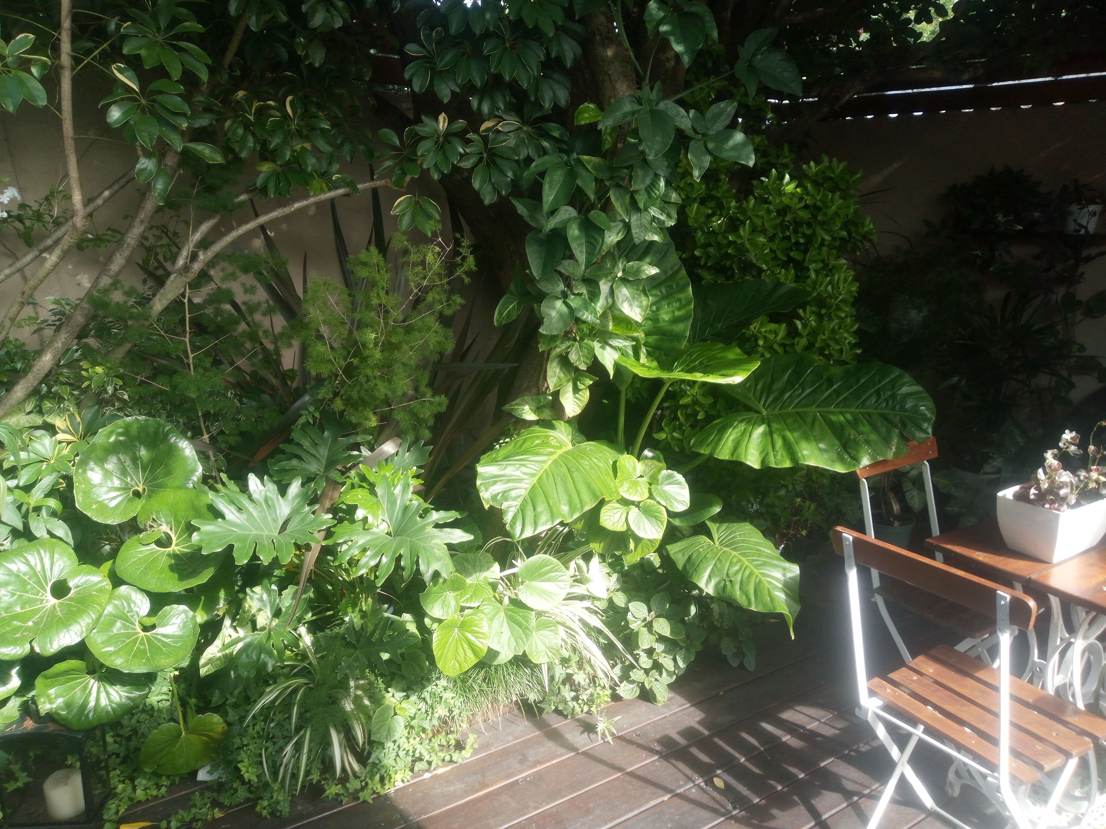 Reacondicionamiento de jardín establecido, utilizando especies que se adapten a ambientes sombríos, asimismo, se realizaron intervenciones que estructuraron el jardín brindándole orden y armonía, se buscó el uso de todos los espacios, incluyendo repisas, macetas y colgantes.