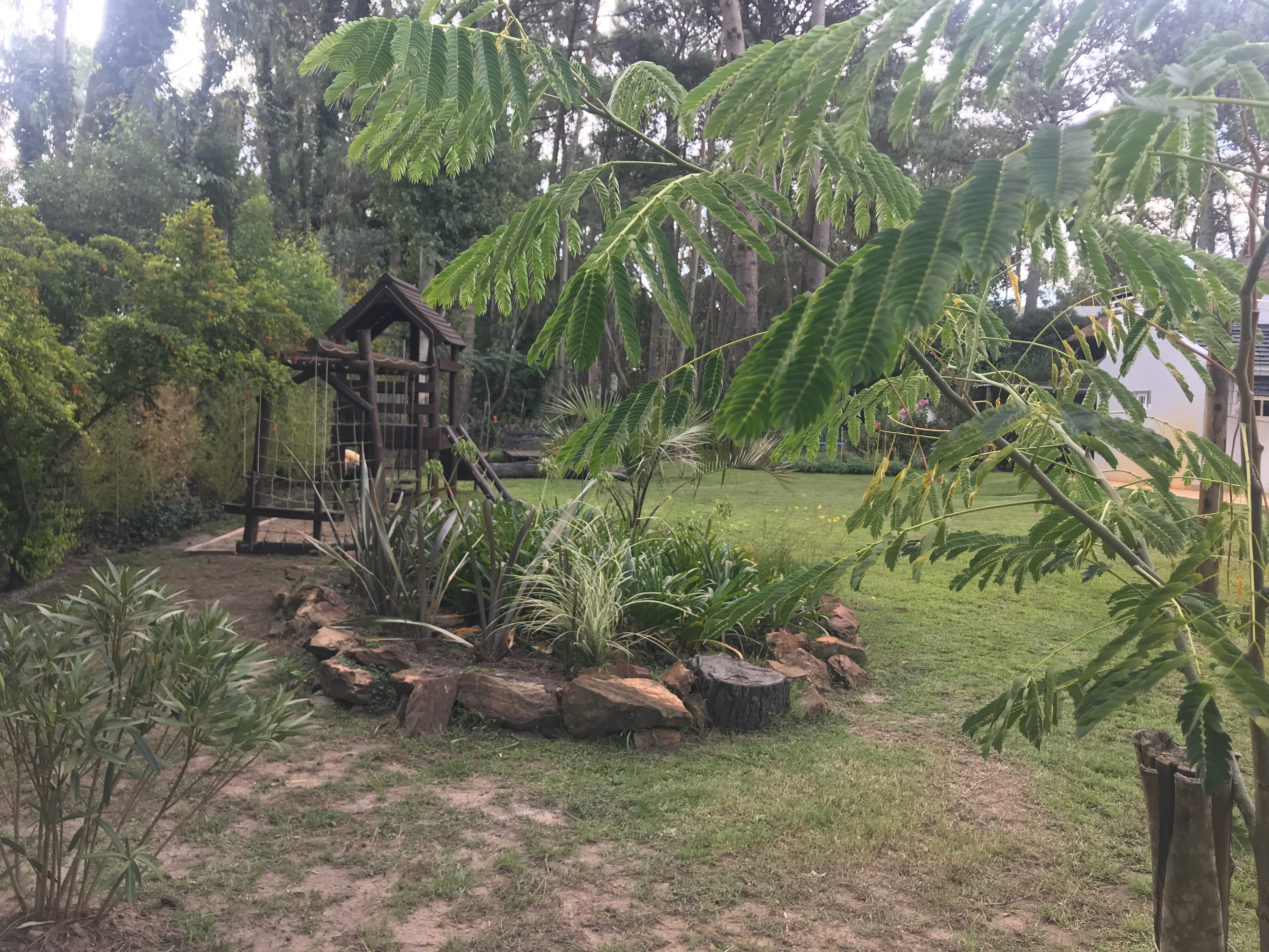 Proyecto paisajístico de jardín residencial, se trabaja aprovechando las áreas del terreno y tomando en consideración la relación con la arquitectura como las necesidades planteadas por el cliente, la generación de privacidad interna del jardín y la incorporación de color y diversidad. Se plantaron especies tapizantes, gramíneas, trepadoras, herbáceas, arbustos, palmeras y arboles.